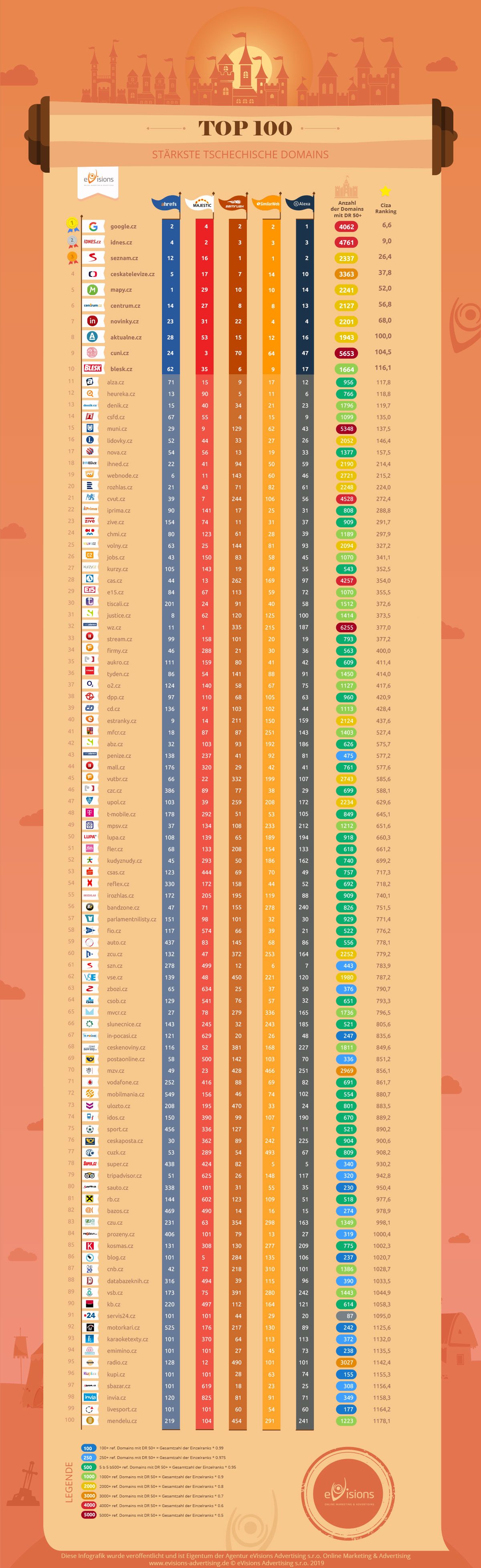 08. 02. 2019 AutorHaben Sie sich schon einmal gefragt, welche Domains in der Tschechischen Republik wirklich gefragt sind? Ich mich auf jeden Fall. Deshalb habe ich in den letzten Tagen auch nicht so viel geschlafen und bin tiefer in das Thema eingestiegen. Mit verschiedenen Tools habe ich dann ein Ranking der stärksten tschechischen Domains erstellt. Los geht’s: