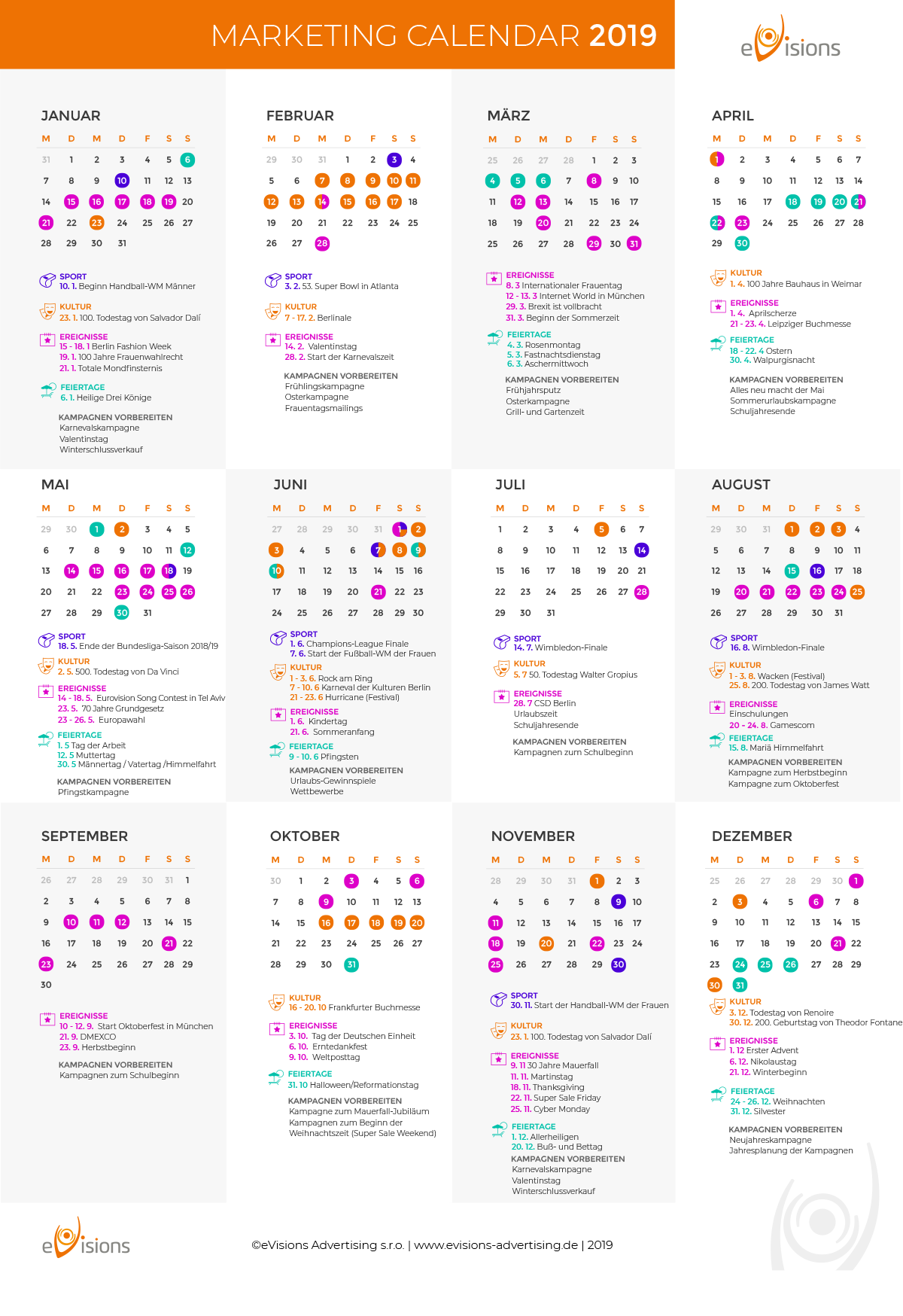 Hier gibt es den eVisions-Marketingkalender für 2019 zum Download.